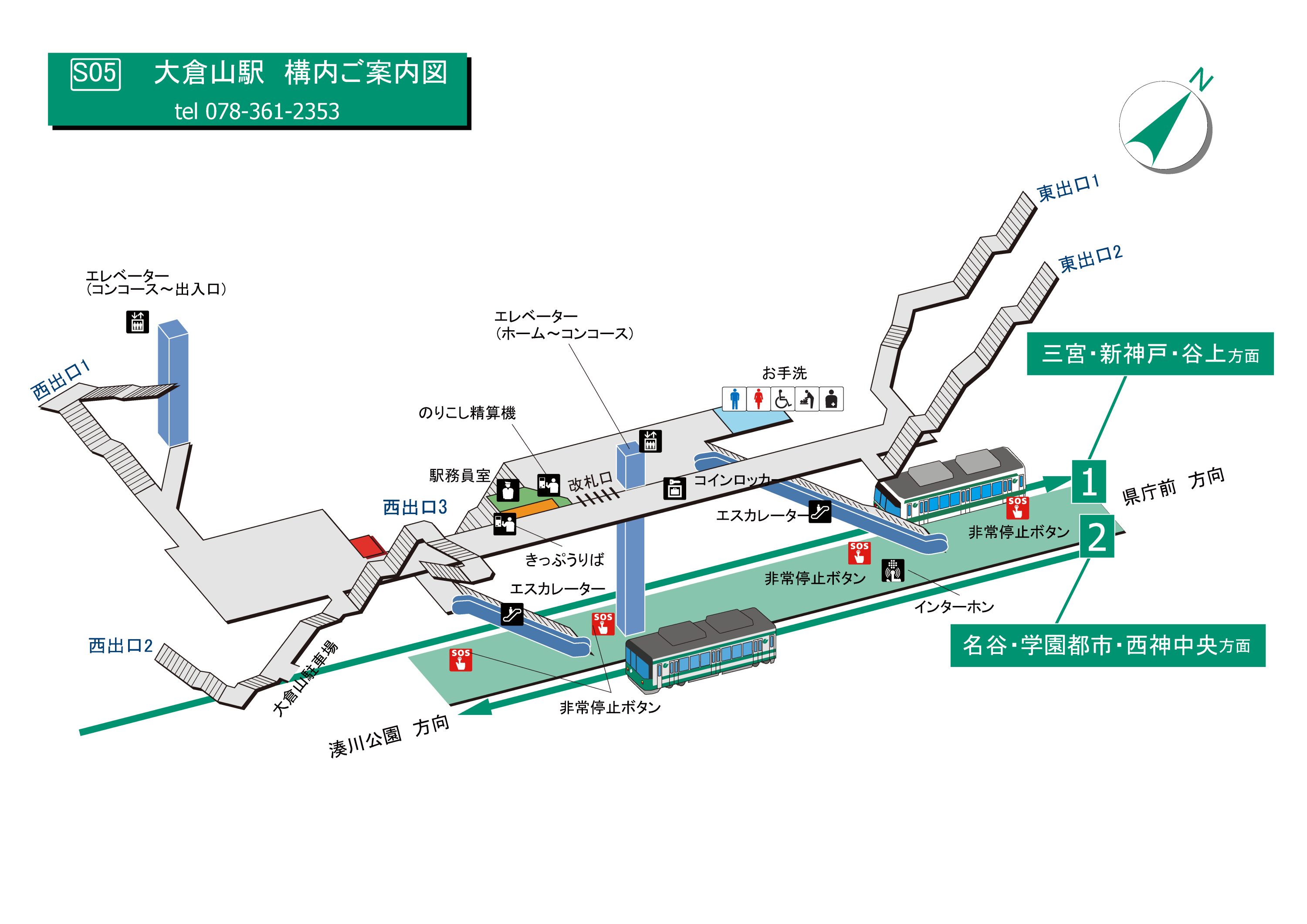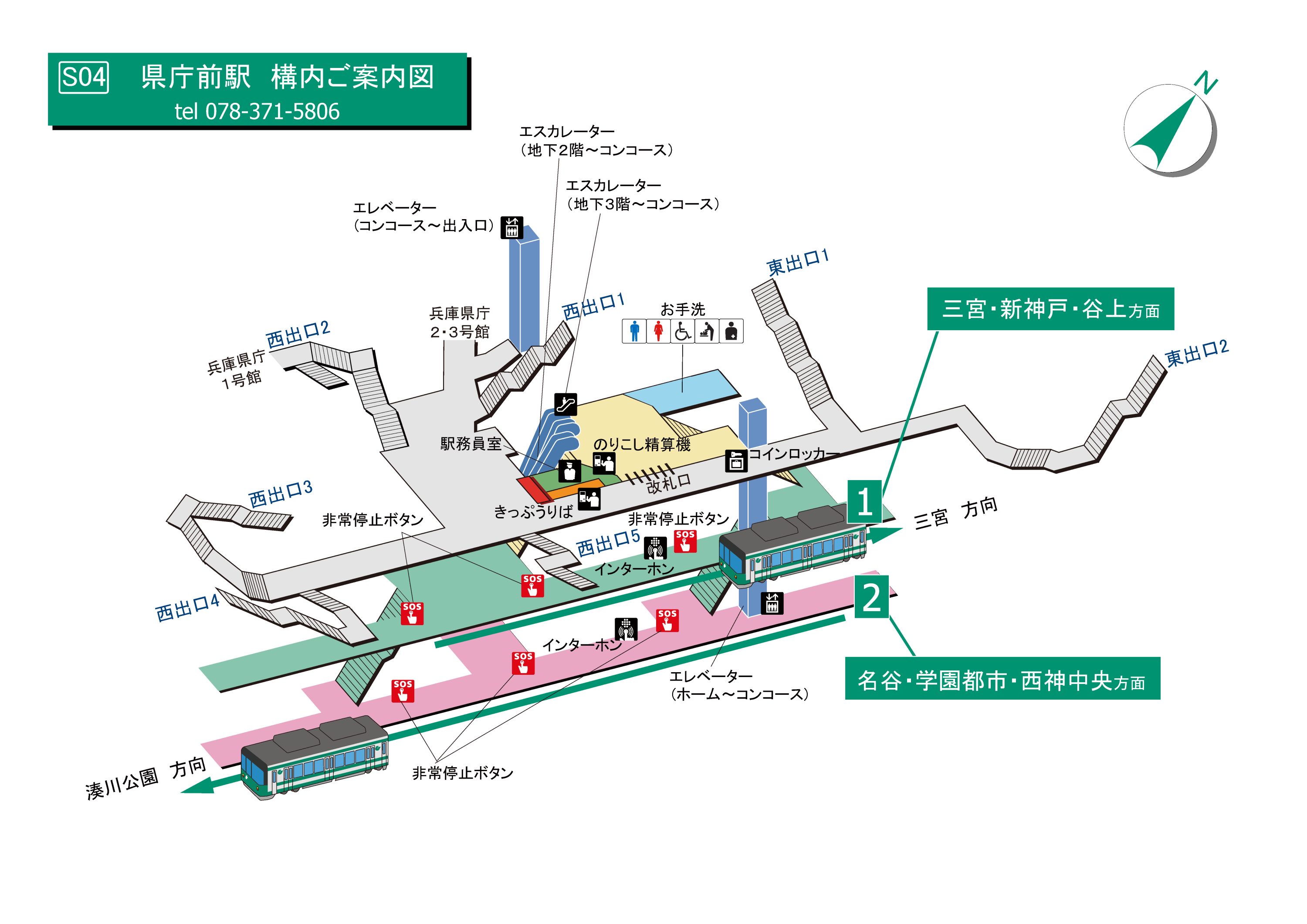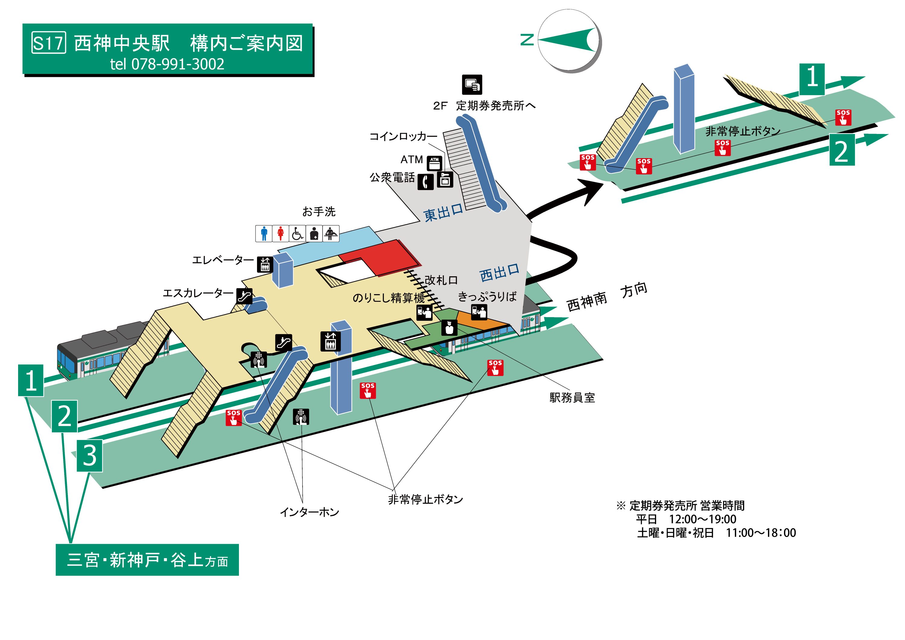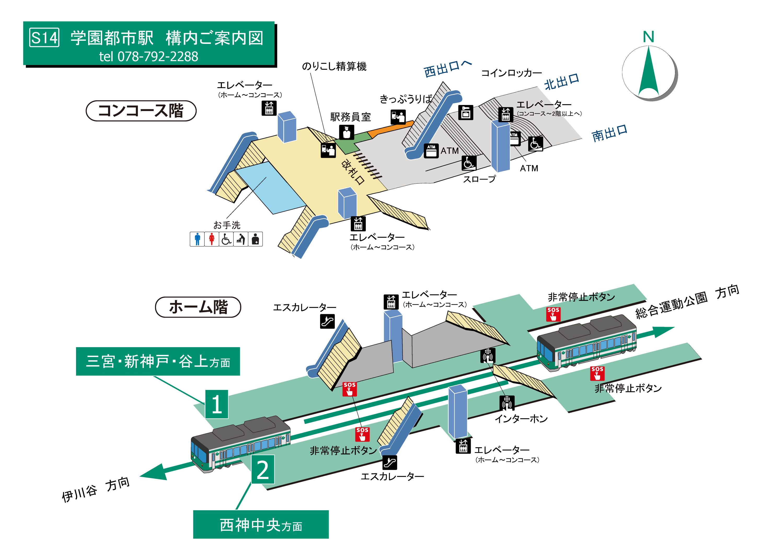 エレベーター・エスカレーター案内図(西神・山手線、北神線)