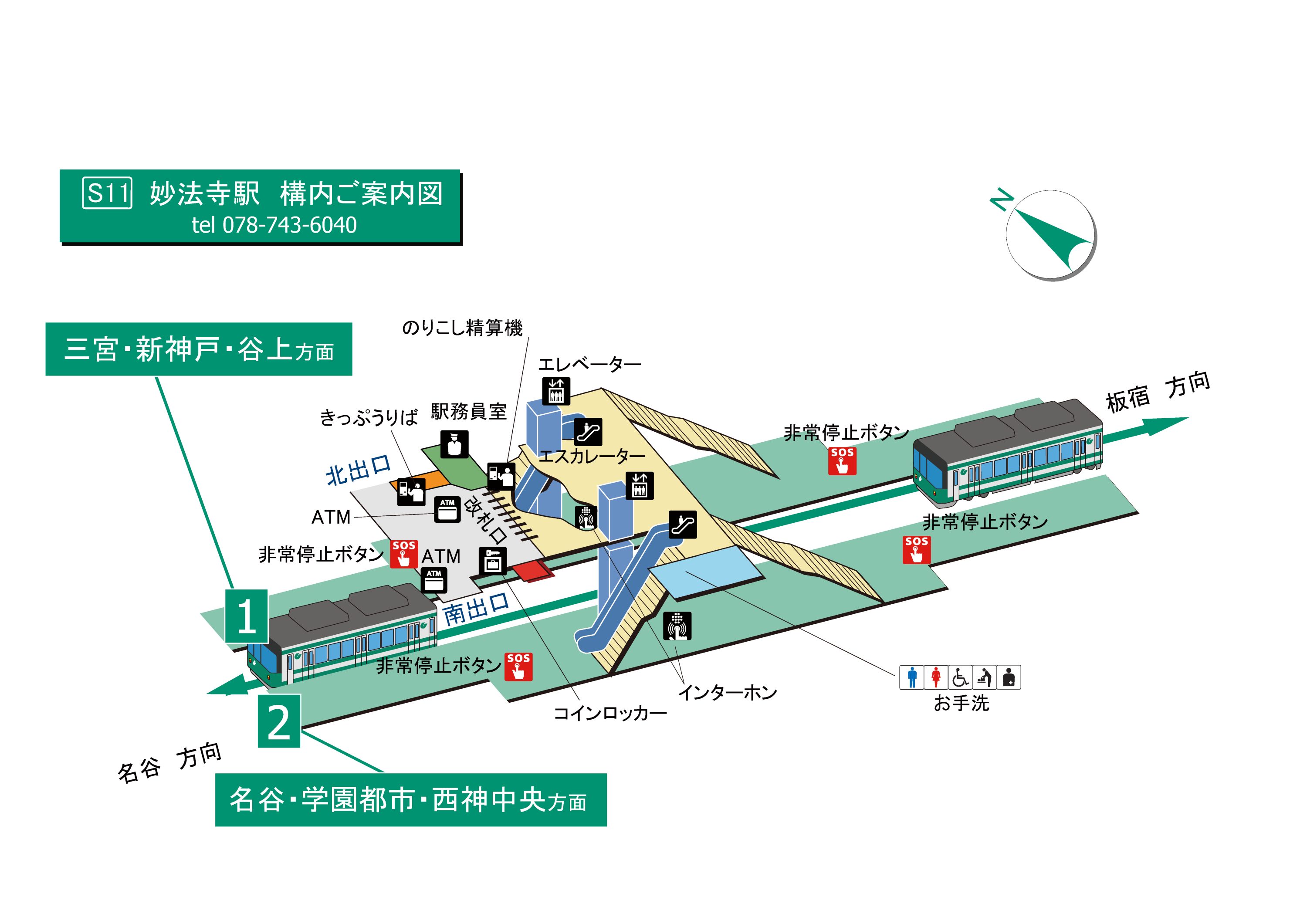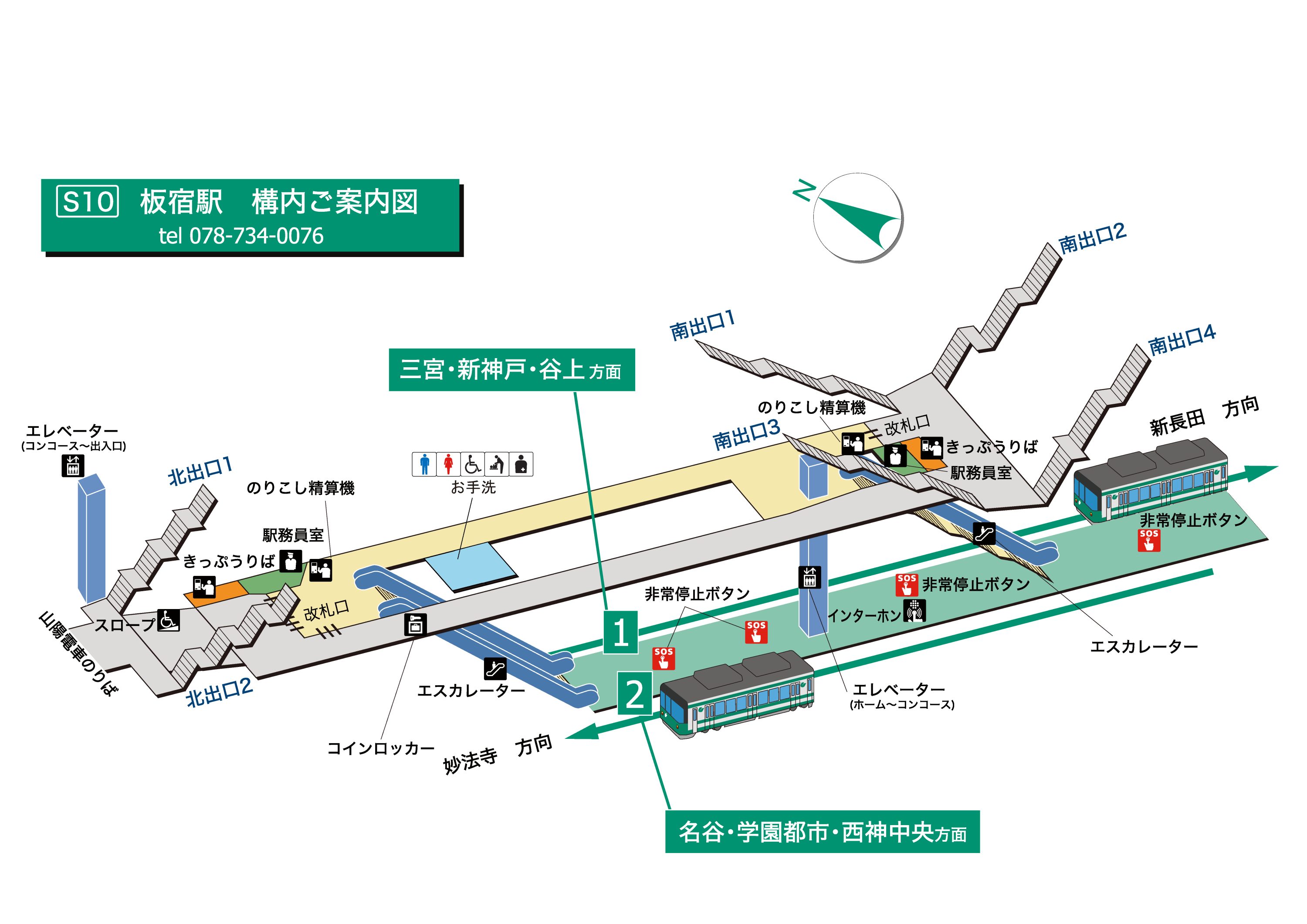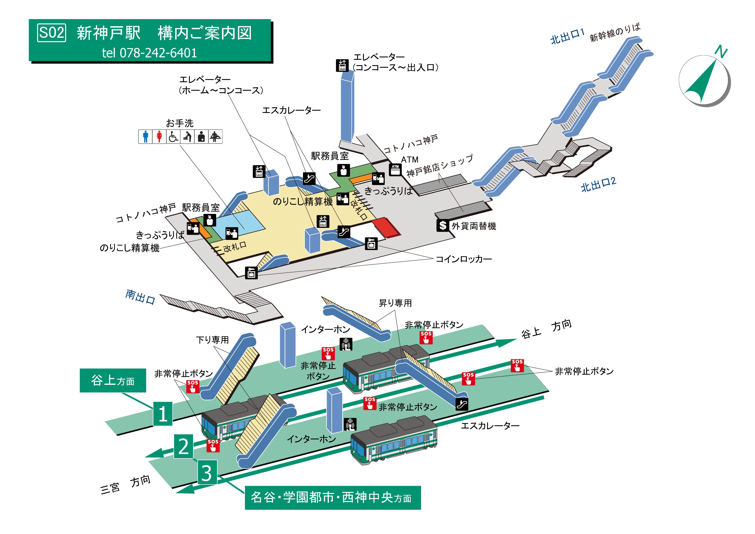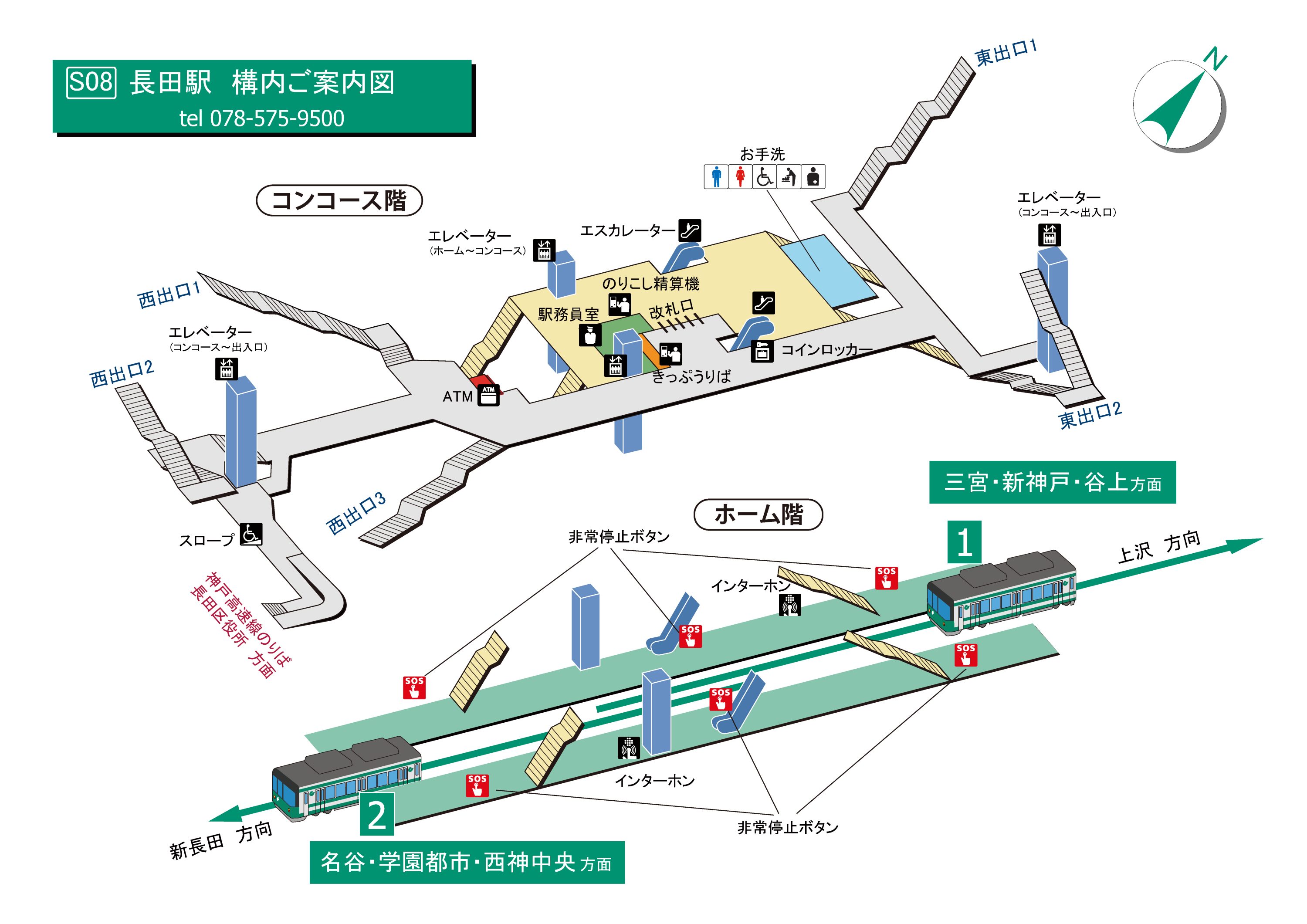 エレベーター・エスカレーター案内図(西神・山手線、北神線)